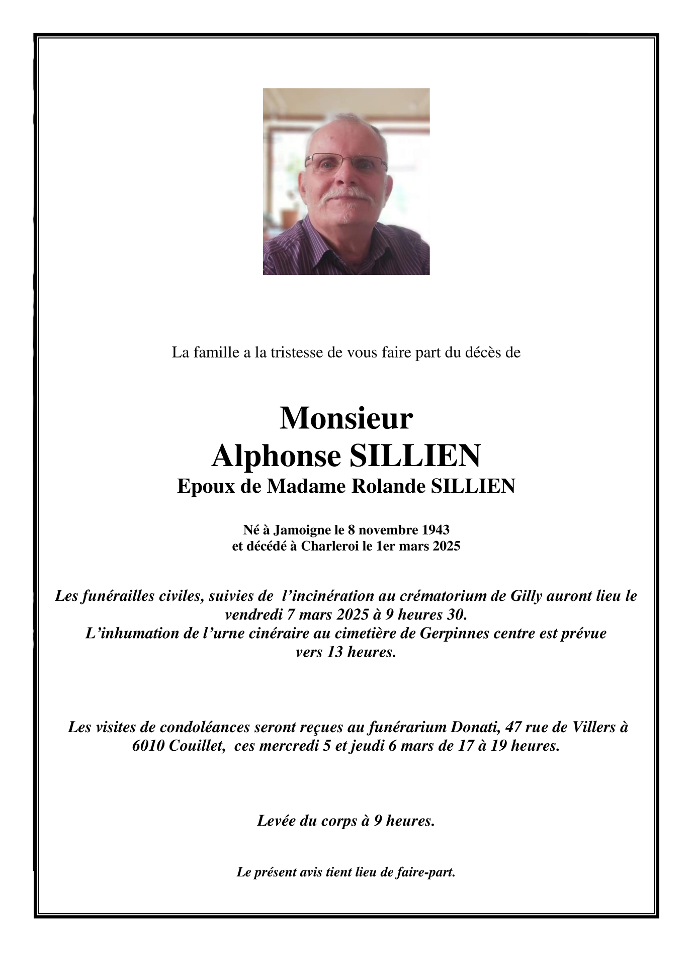 Décédé à Charleroi (6000) le samedi 1 mars 2025 à l'âge de 81 ans
