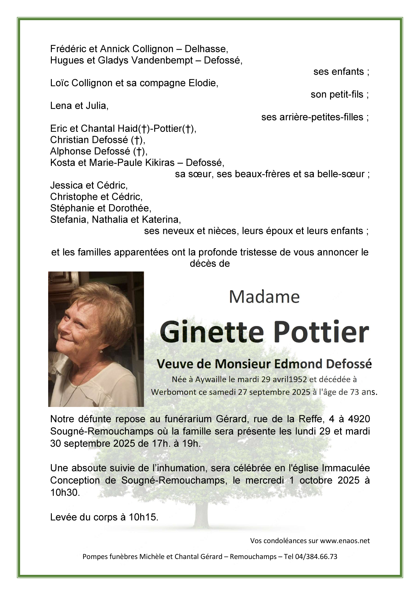 Died in Ferrières (4190) on 27 September 2025 at the age of 73 years