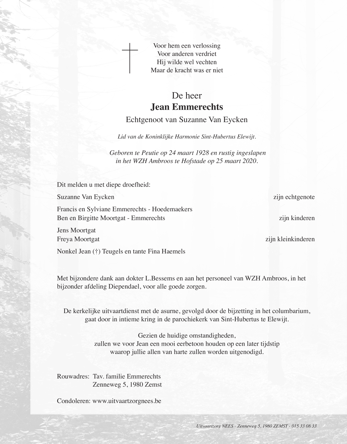 Décédé à Hofstade (Bt.) (1981) le mercredi 25 mars 2020 à l'âge de 92 ans