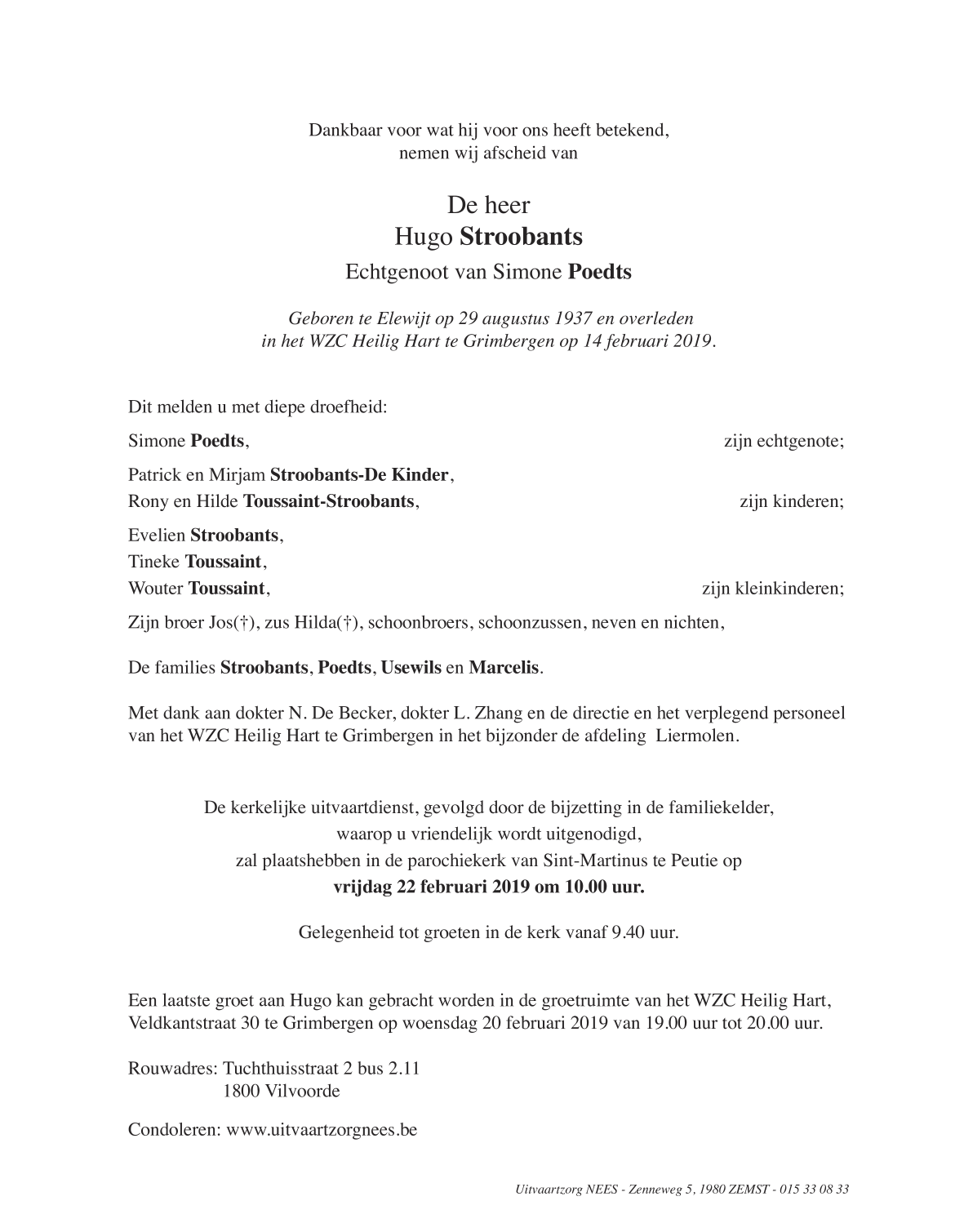 Died in Grimbergen (1850) on 14 February 2019 at the age of 81 years