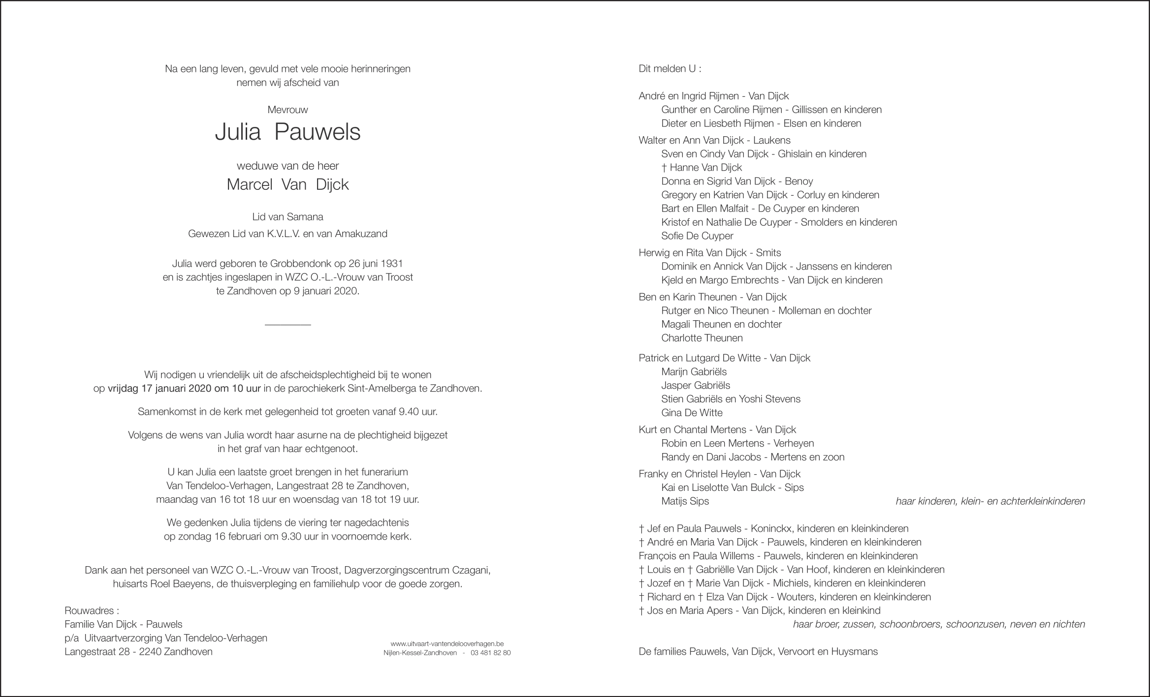 Fallecida en Zandhoven (2240) el jueves, 9 de enero de 2020 a la edad de 88 años