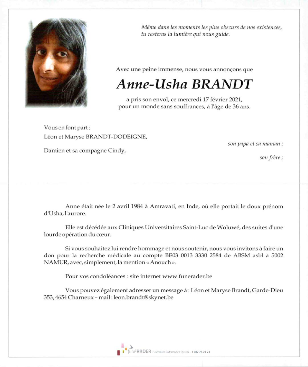 Died in Brussel (Sint-Lambrechts-Woluwe) (1200) on 17 February 2021 at the age of 36 years