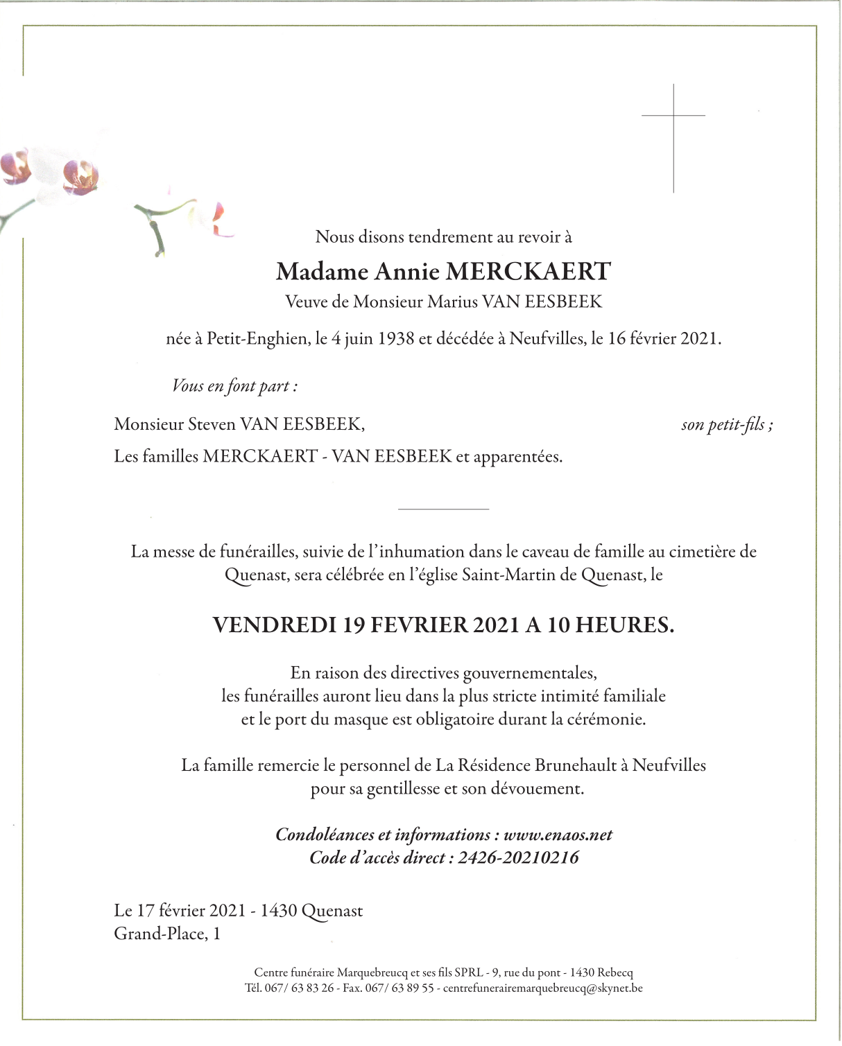 Died in Neufvilles (7063) on 16 February 2021 at the age of 82 years
