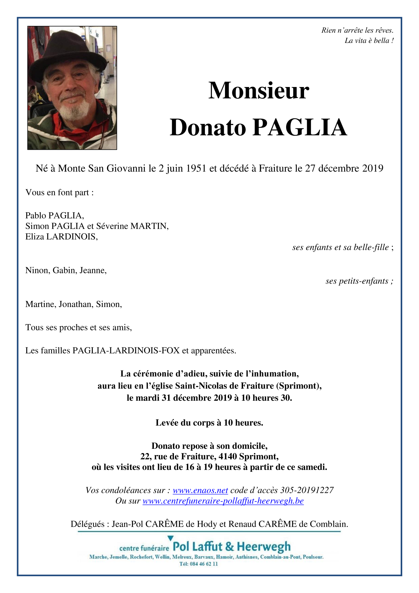 Overleden te Sprimont (4140) op vrijdag 27 december 2019 op 68-jarige leeftijd