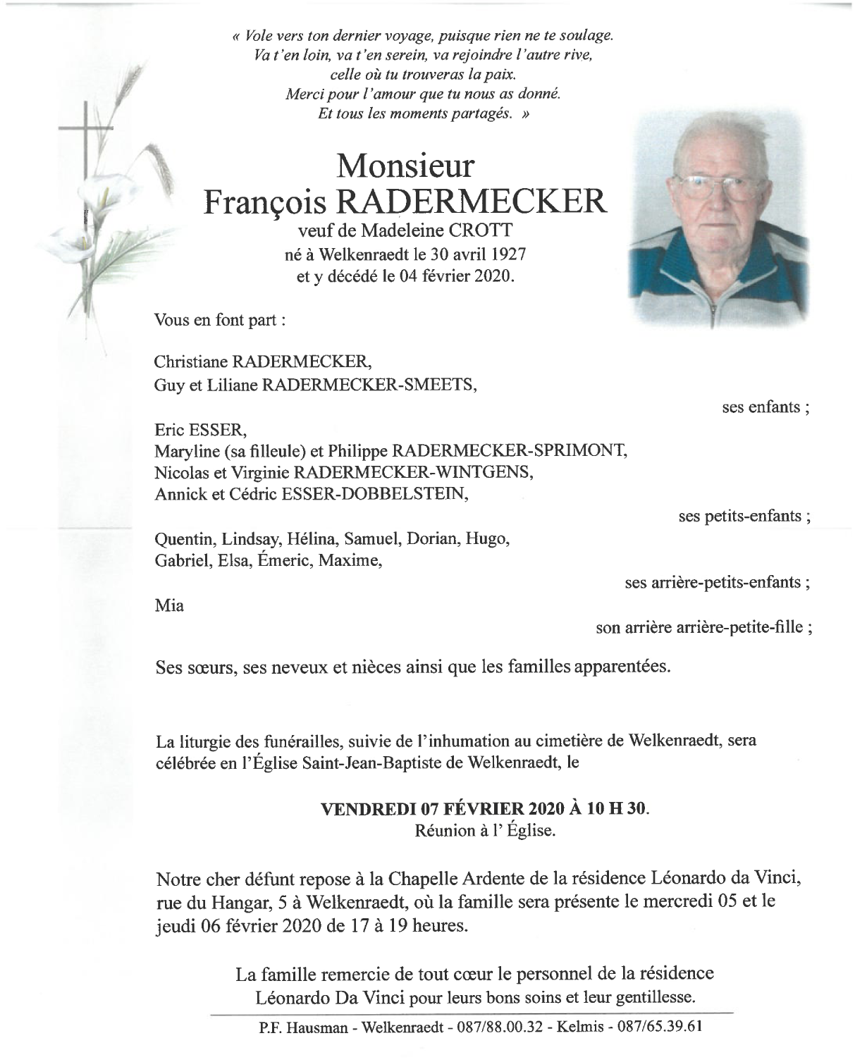 Monsieur François RADERMECKER
