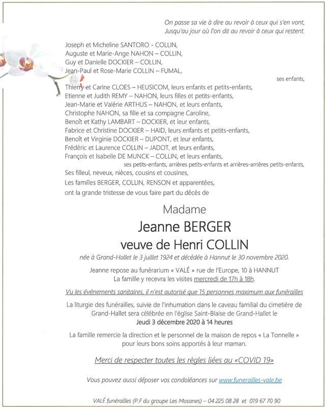 Died in Hannut (4280) on 30 November 2020 at the age of 96 years