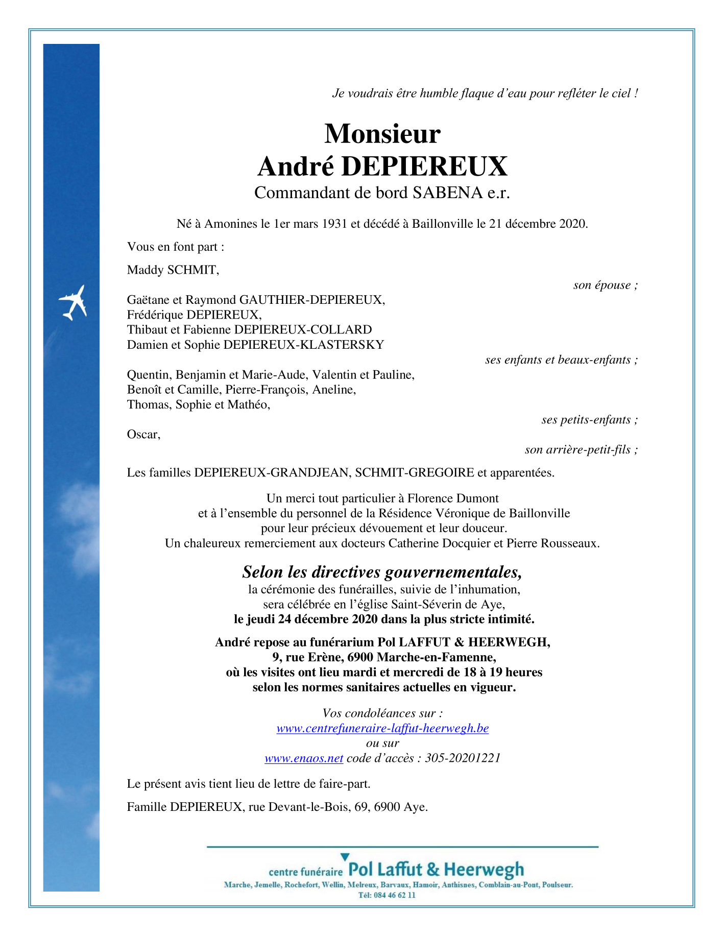 Fallecido en Baillonville (5377) el lunes, 21 de diciembre de 2020 a la edad de 89 años