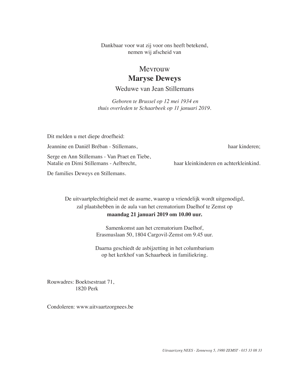 Veuve de de heer Jean Stillemans