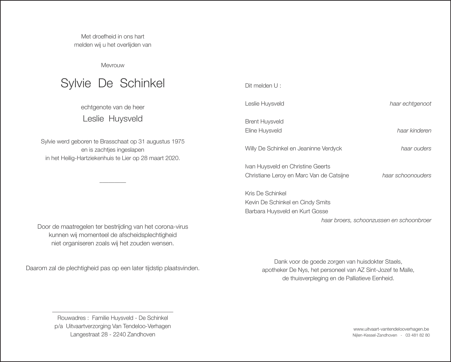 Décédée à Lier (2500) le samedi 28 mars 2020 à l'âge de 44 ans