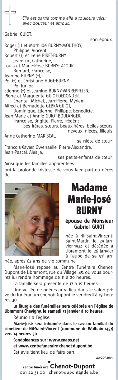 Died in Libramont-Chevigny (6800) on 26 January 2015 at the age of 90 years