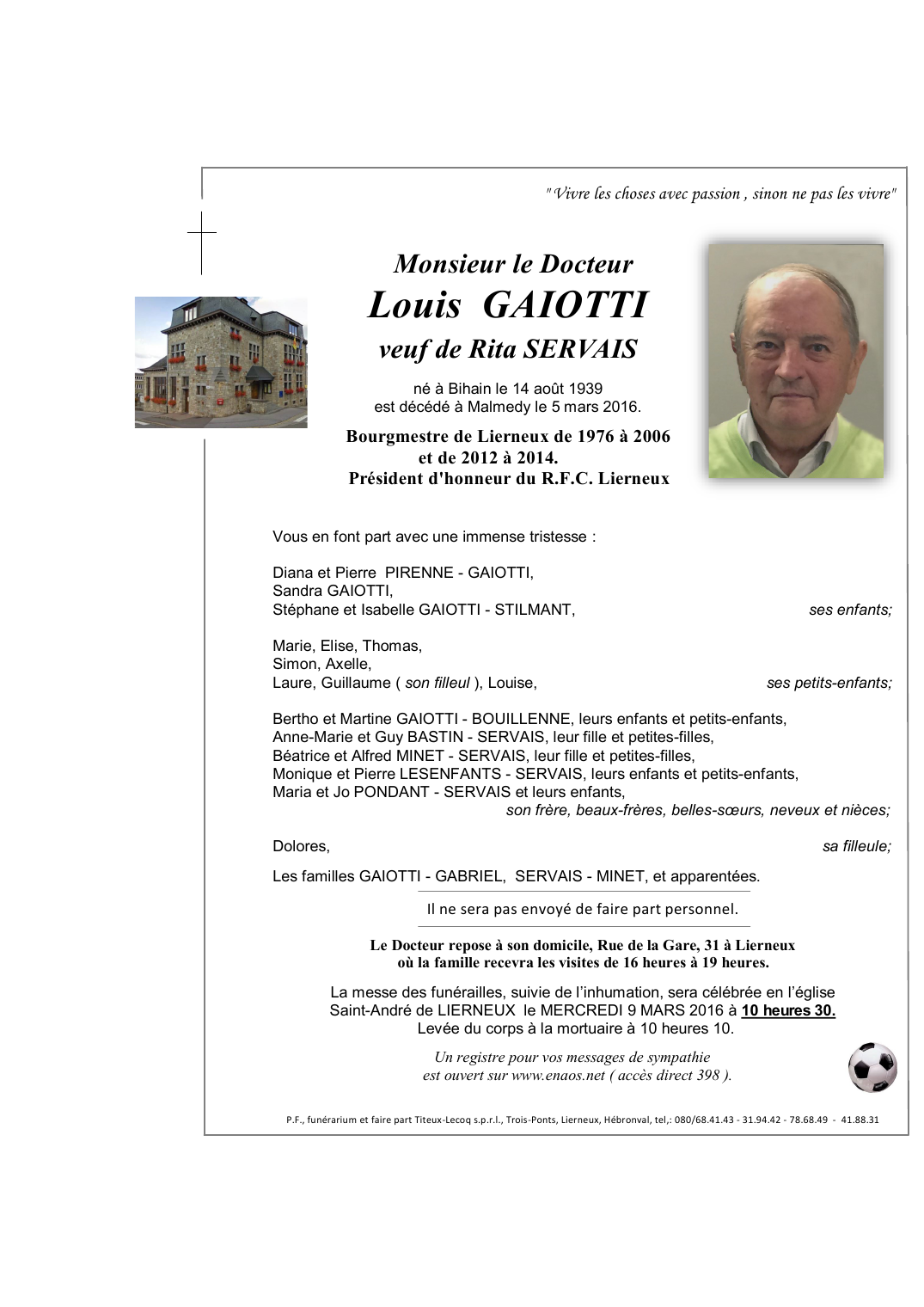 Died in Malmedy (4960) on 05 March 2016 at the age of 76 years