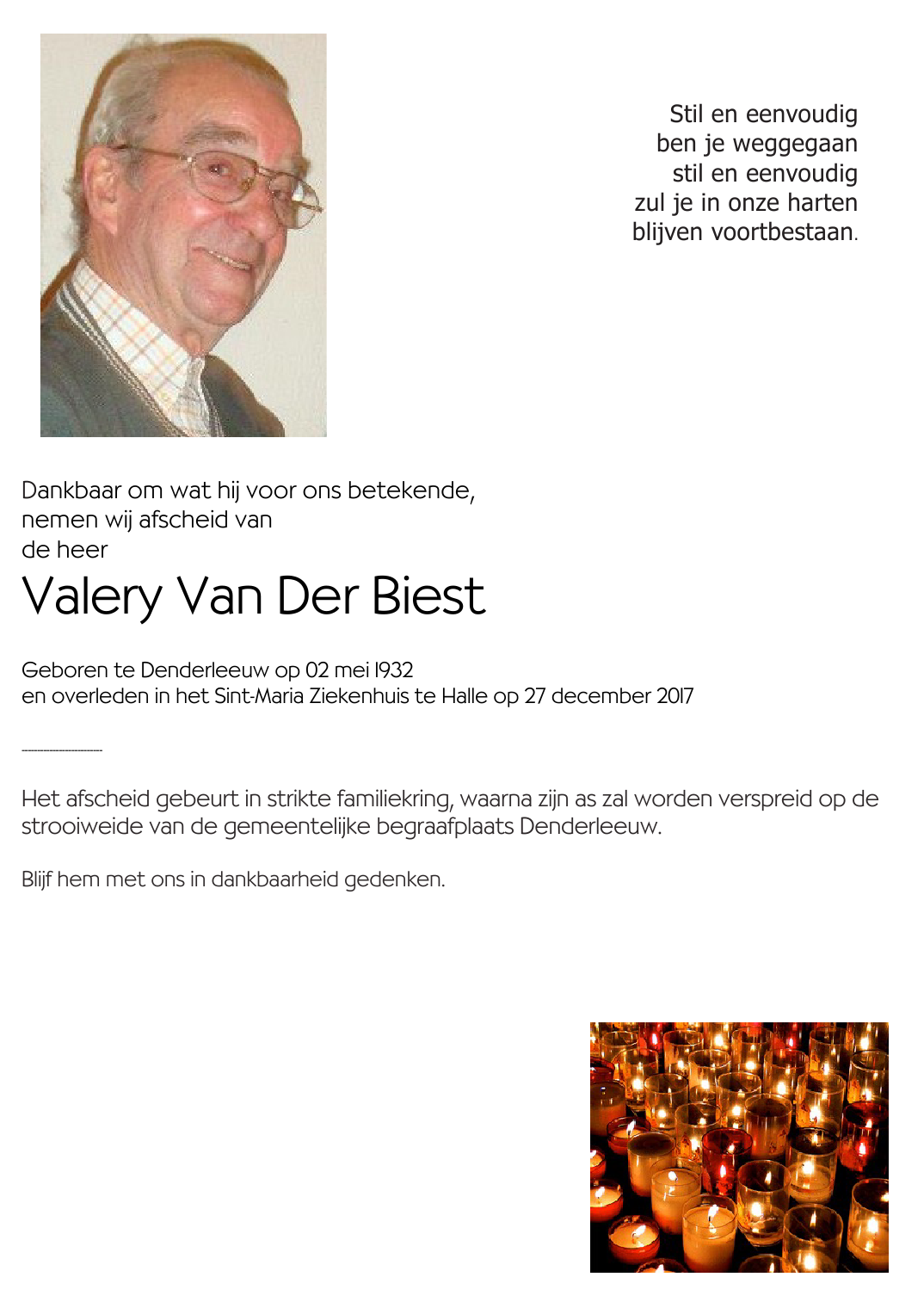 Overleden te Halle (1500) op woensdag 27 december 2017 op 85-jarige leeftijd
