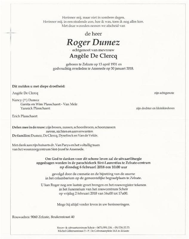 Fallecido en Assenede (9960) el martes, 30 de enero de 2018 a la edad de 86 años