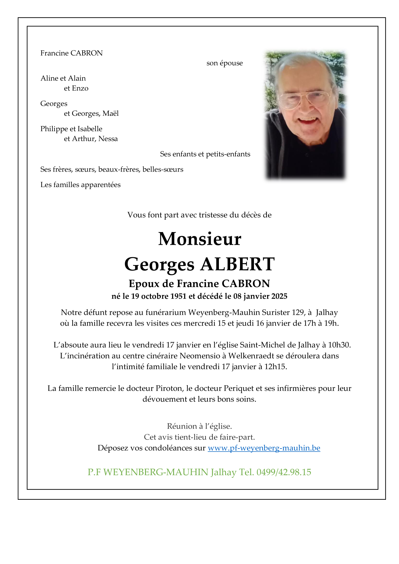 Died in Jalhay (4845) on 08 January 2025 at the age of 73 years