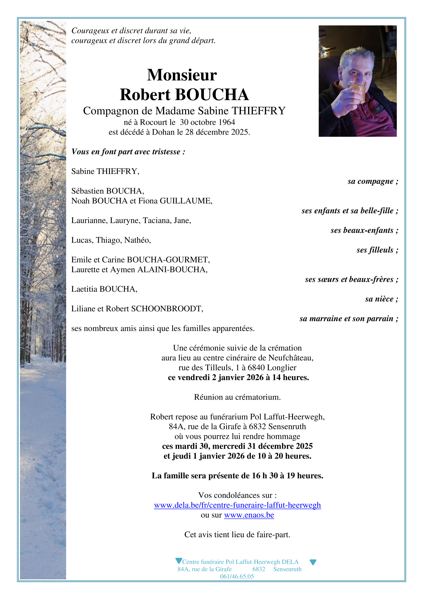 Overleden te Dohan (6836) op zondag 28 december 2025 op 61-jarige leeftijd