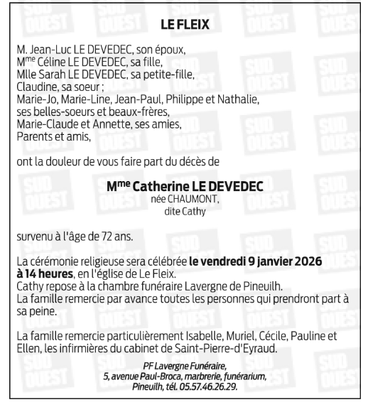 Madame Catherine LE DEVEDEC geboren CHAUMONT