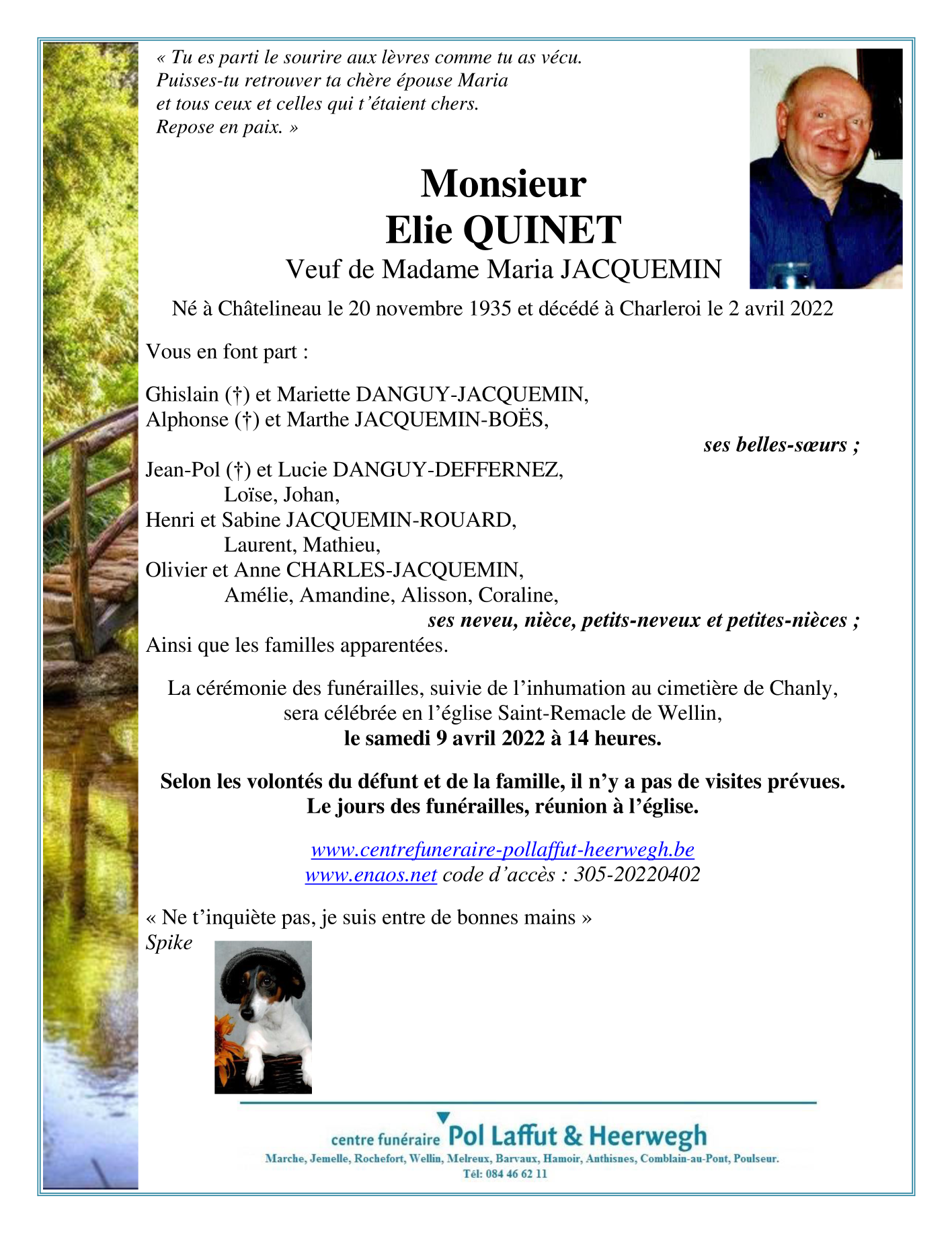 Overleden te Charleroi (6000) op zaterdag 2 april 2022 op 86-jarige leeftijd