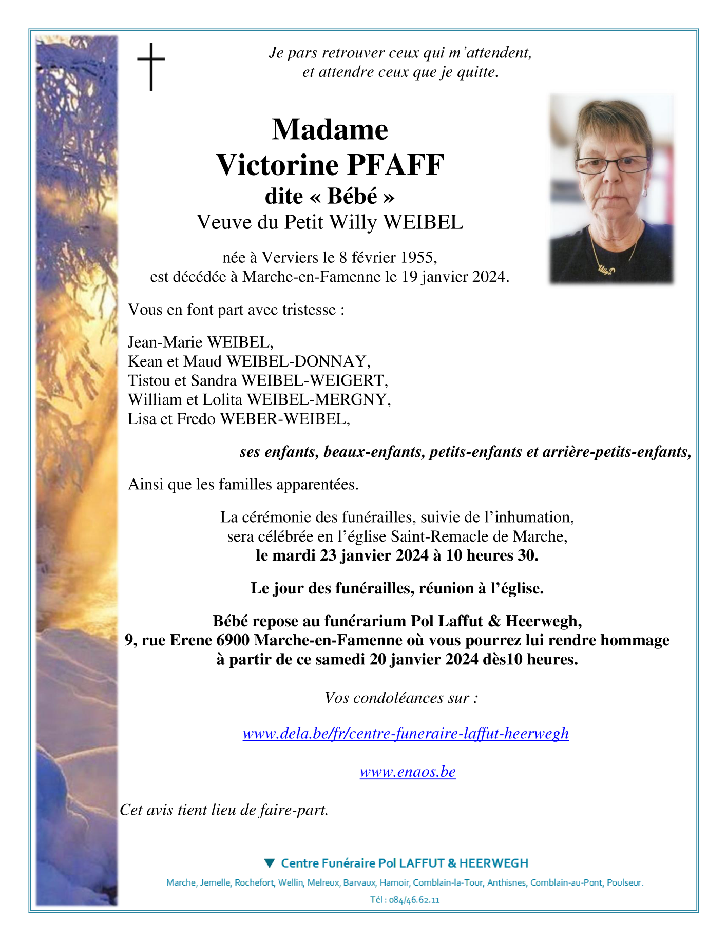 Overleden te Marche-en-Famenne (6900) op vrijdag 19 januari 2024 op 68-jarige leeftijd