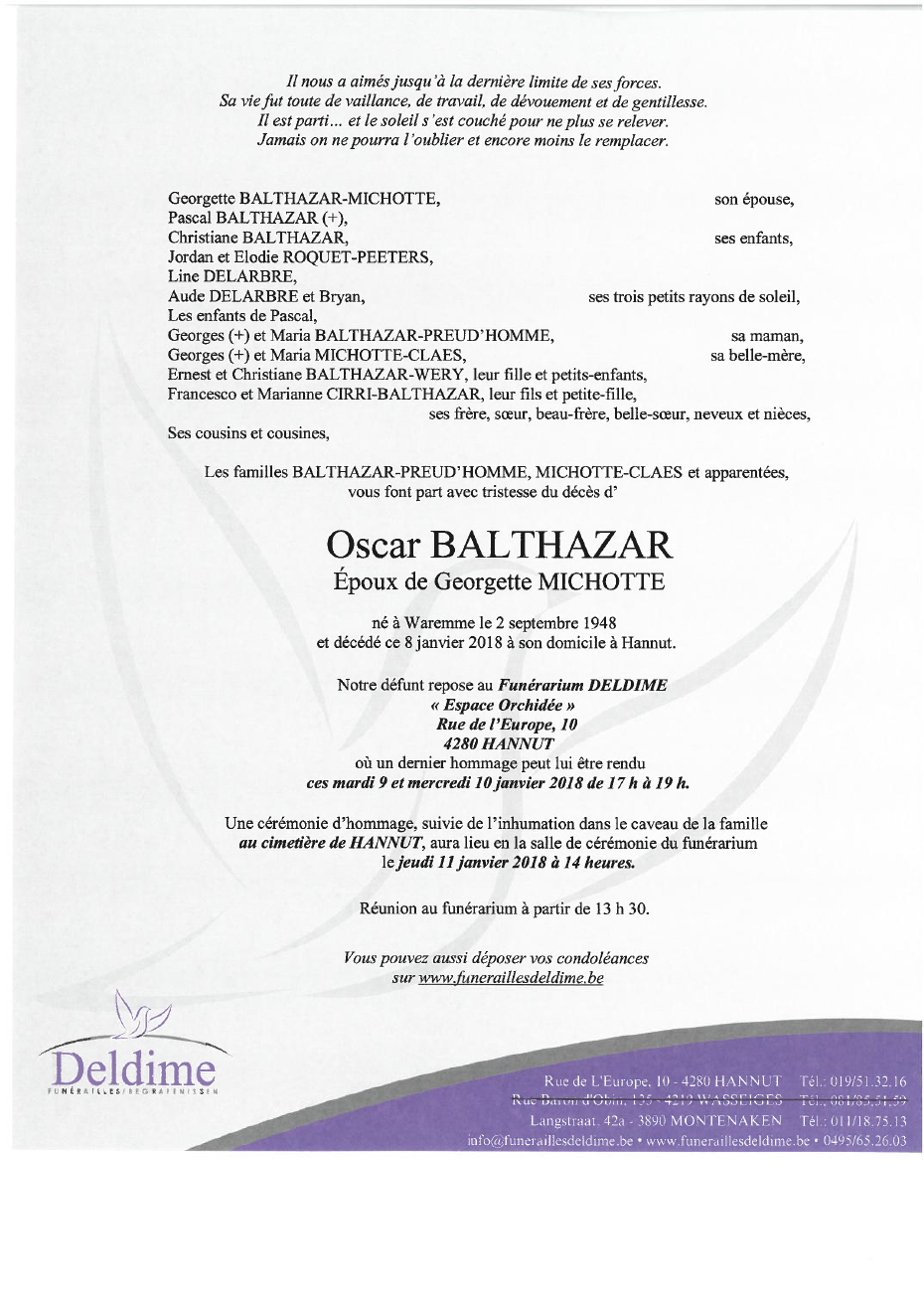 Died in Hannut (4280) on 08 January 2018 at the age of 69 years