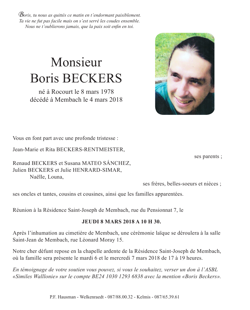 Décédé à Membach (4837) le dimanche 4 mars 2018 à l'âge de 39 ans