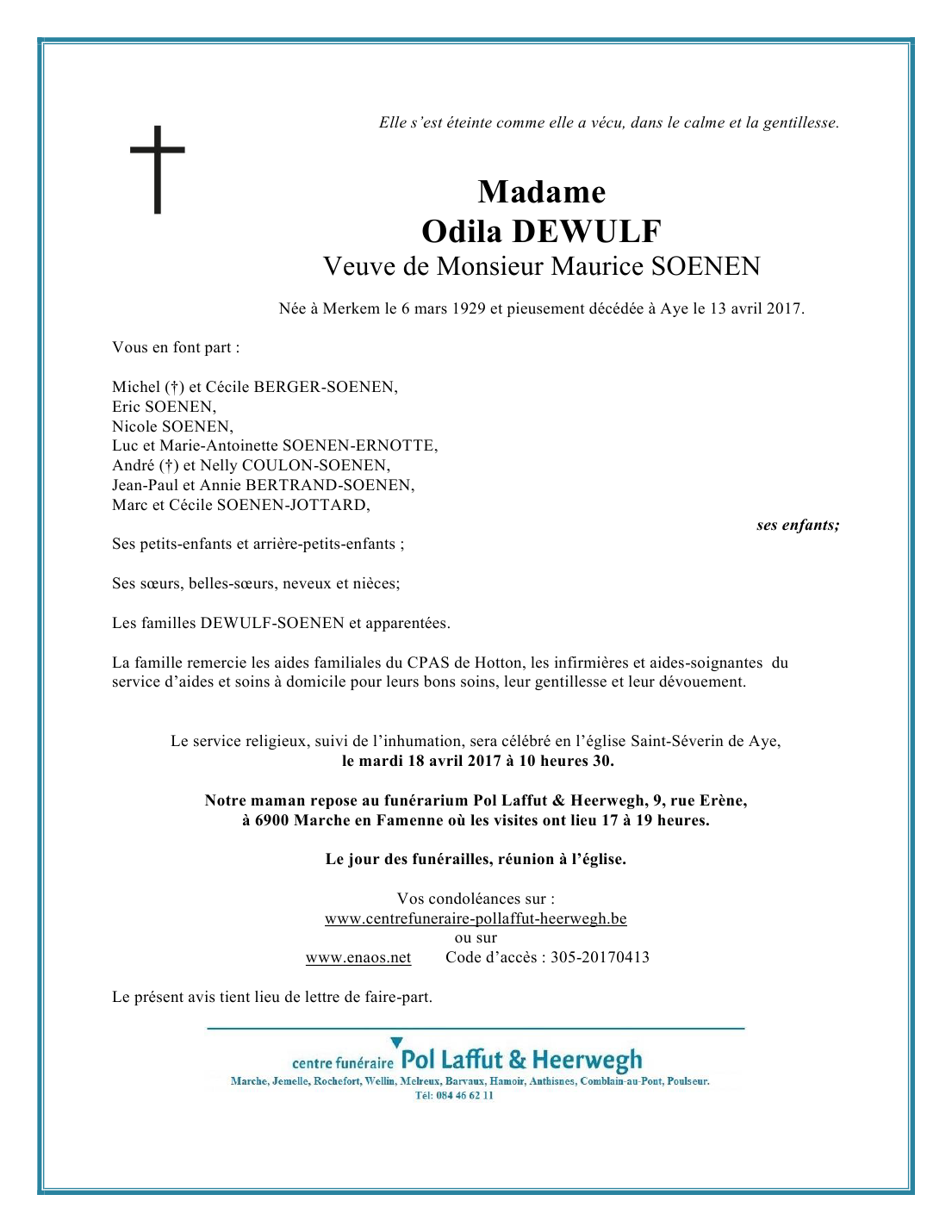 Died in Aye (6900) on 13 April 2017 at the age of 88 years