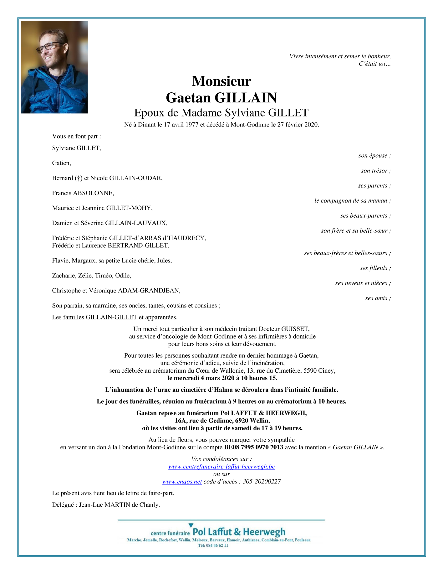 Overleden te Mont-Godinne (5530) op donderdag 27 februari 2020 op 42-jarige leeftijd