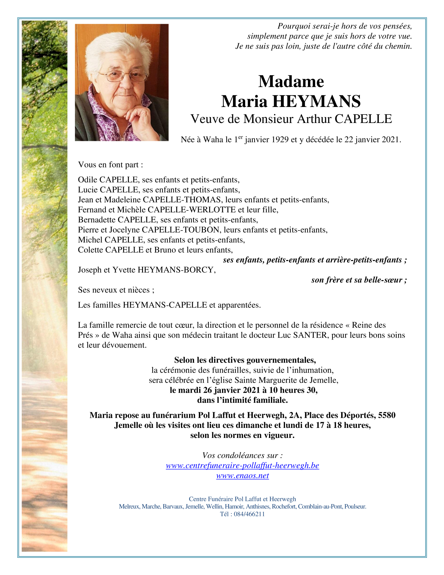 Overleden te Waha (6900) op vrijdag 22 januari 2021 op 92-jarige leeftijd