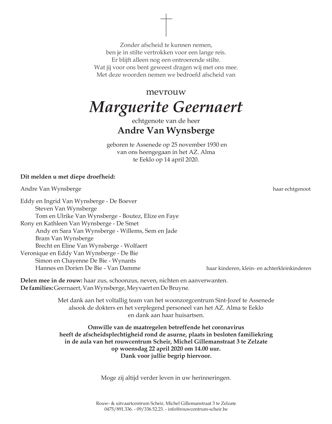 Echtgenote van Mijnheer Andreas Van Wynsberge