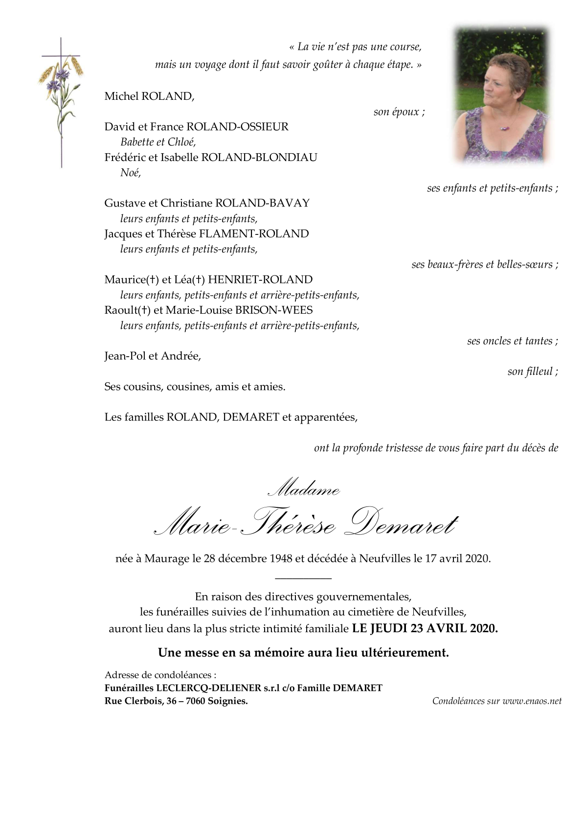 Overleden te Neufvilles (7063) op vrijdag 17 april 2020 op 71-jarige leeftijd