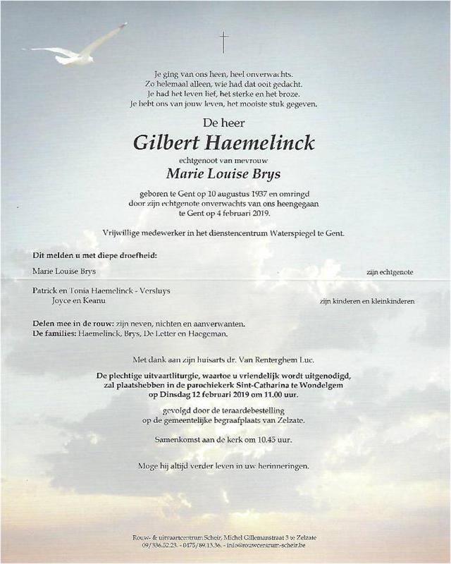 Died in Wondelgem (9032) on 04 February 2019 at the age of 81 years