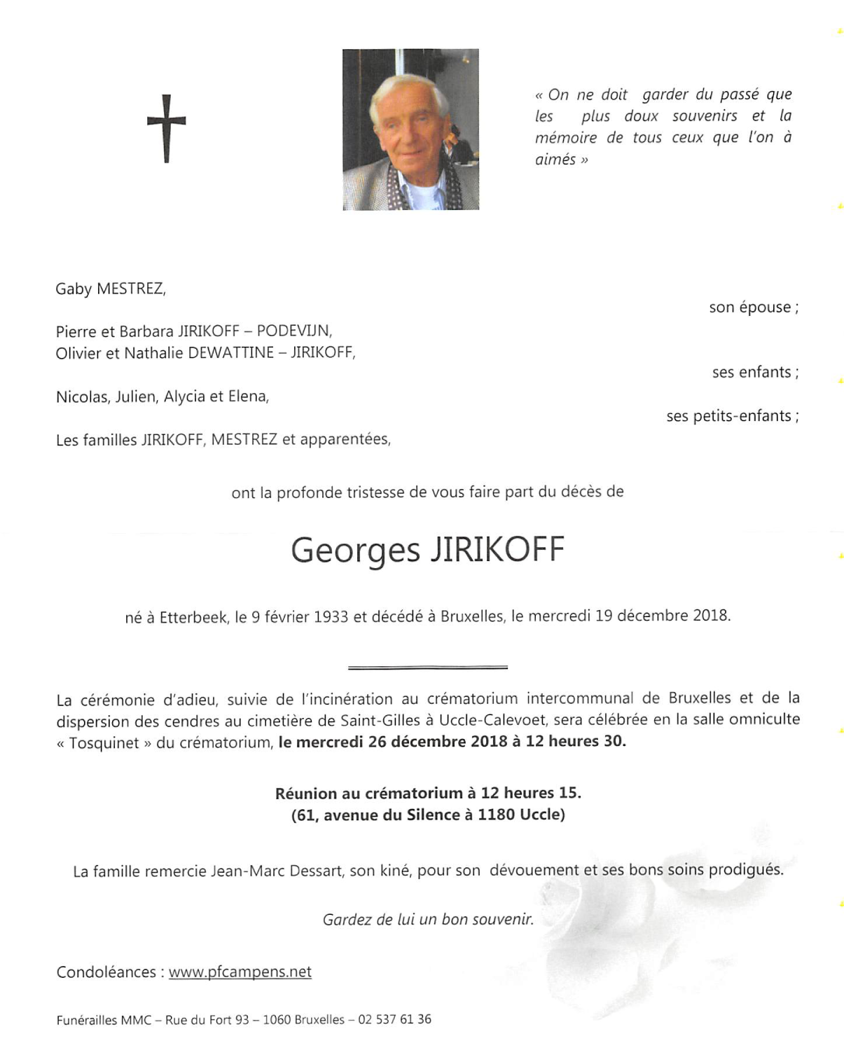 Décédé à Bruxelles (1000) le mercredi 19 décembre 2018 à l'âge de 85 ans