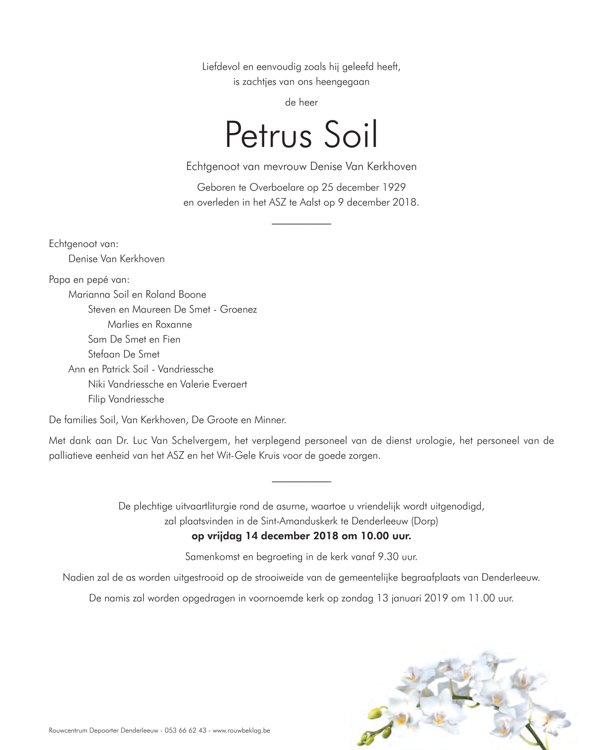 Décédé à Aalst (9300) le dimanche 9 décembre 2018 à l'âge de 88 ans