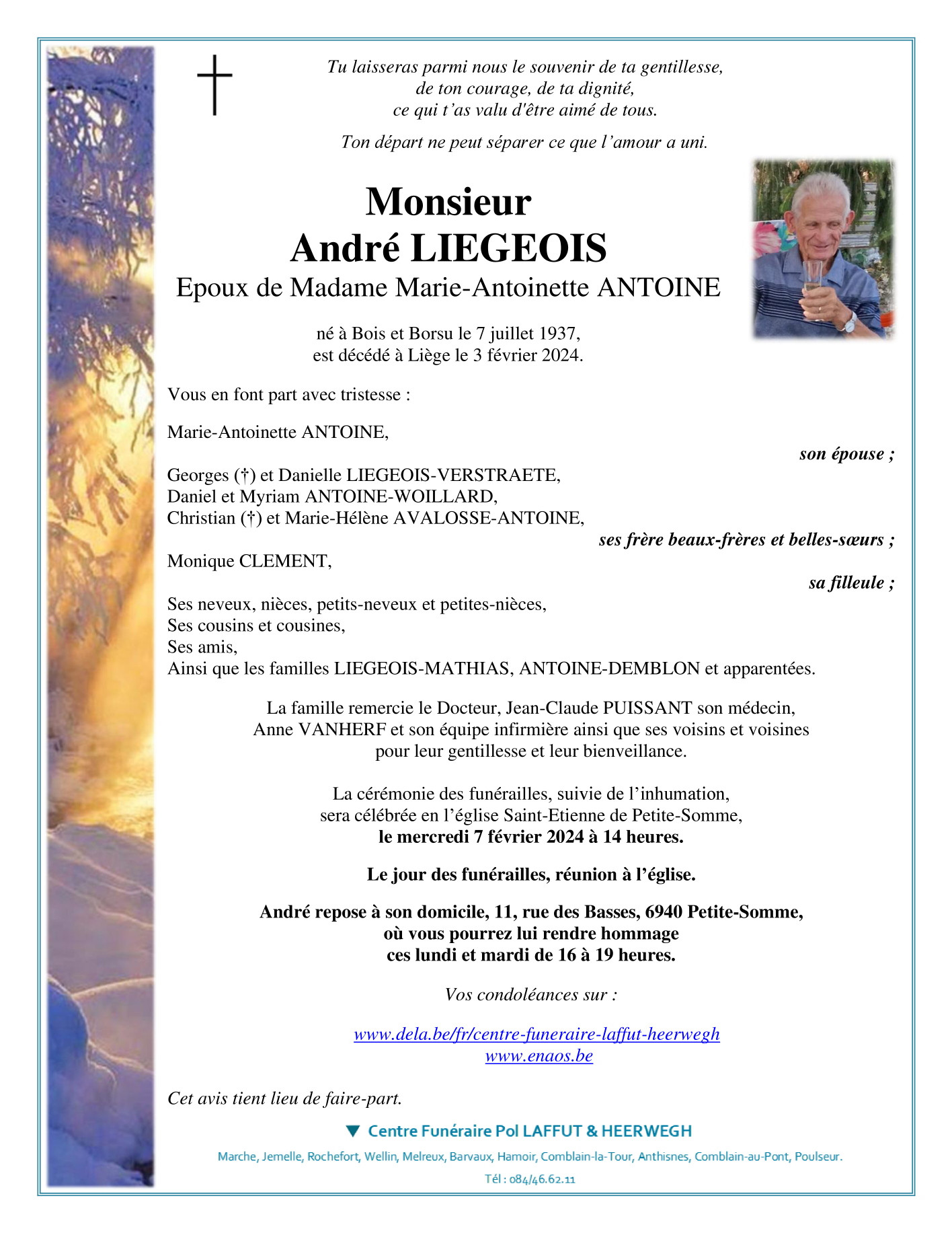 Died in Liège (4000) on 04 February 2024 at the age of 86 years