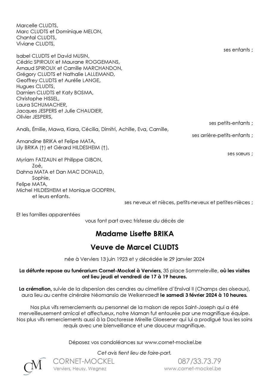 Died in Verviers (4800) on 29 January 2024 at the age of 100 years