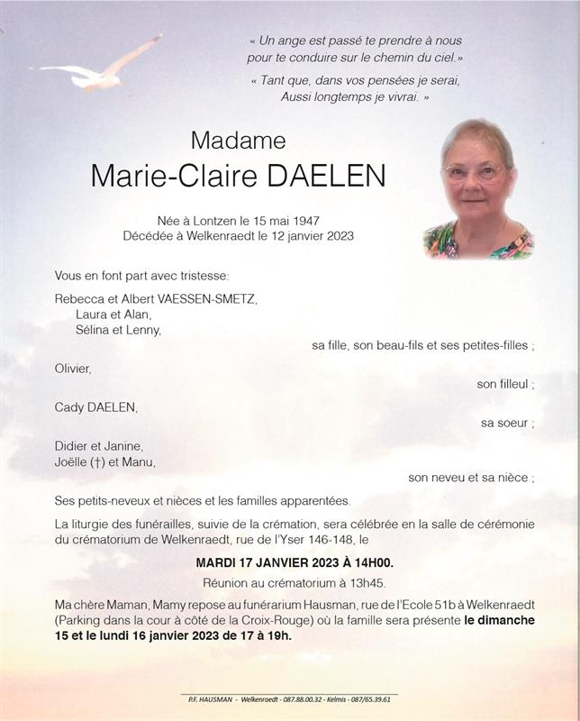 Overleden te Welkenraedt (4840) op donderdag 12 januari 2023 op 75-jarige leeftijd