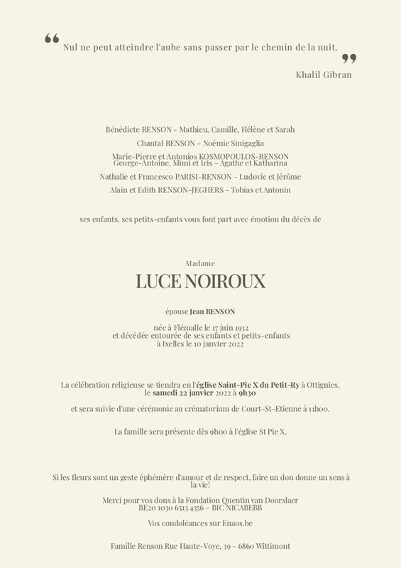 Died in Ixelles (1050) on 10 January 2022 at the age of 89 years
