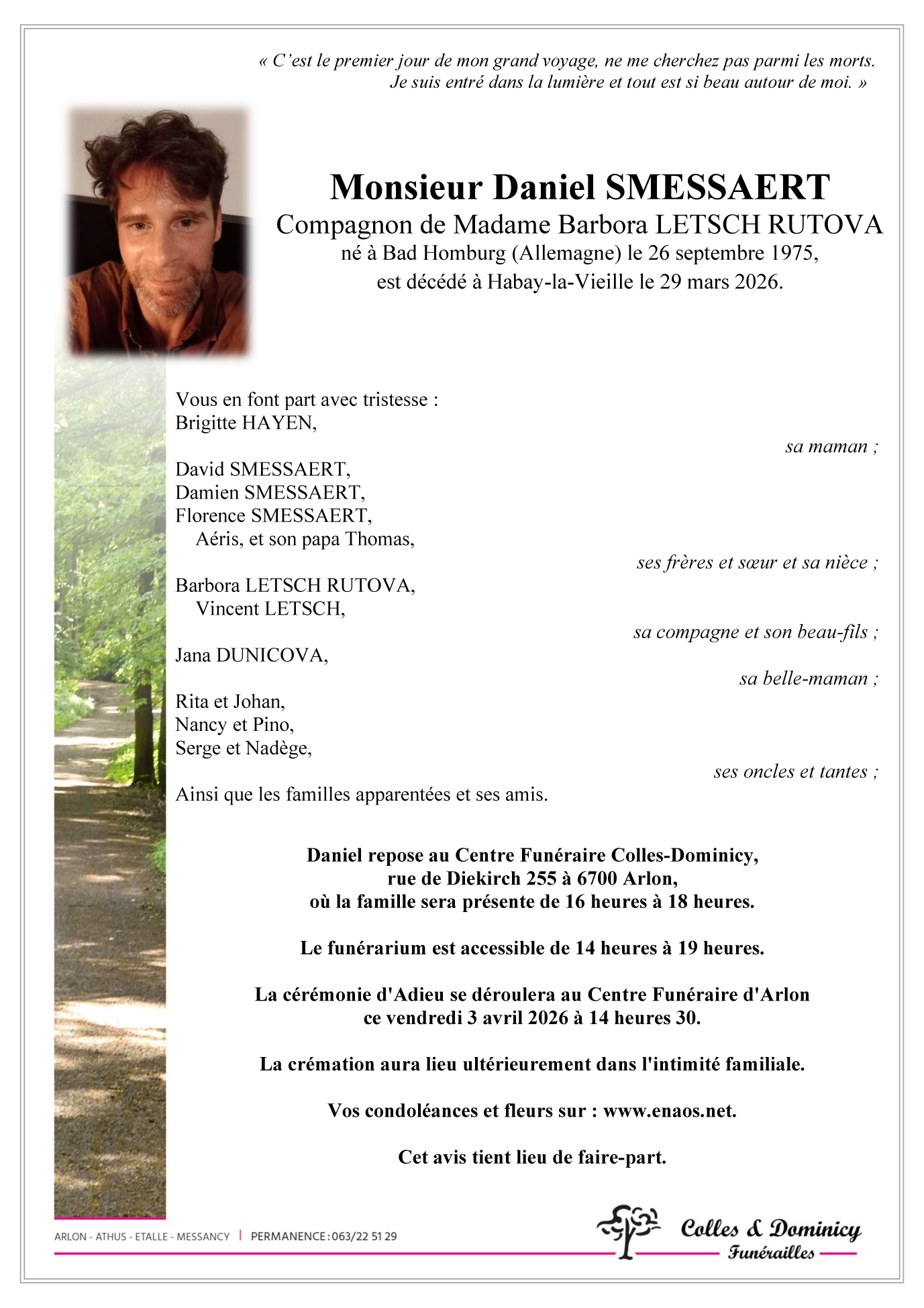 Fallecido en Habay-la-Vieille (6723) el domingo, 29 de marzo de 2026 a la edad de 50 años