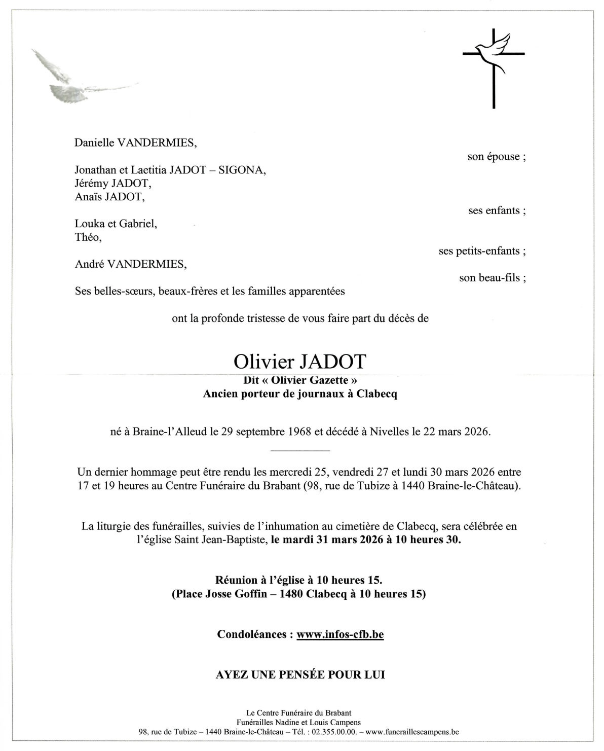 Décédé à Nivelles (1400) le dimanche 22 mars 2026 à l'âge de 57 ans