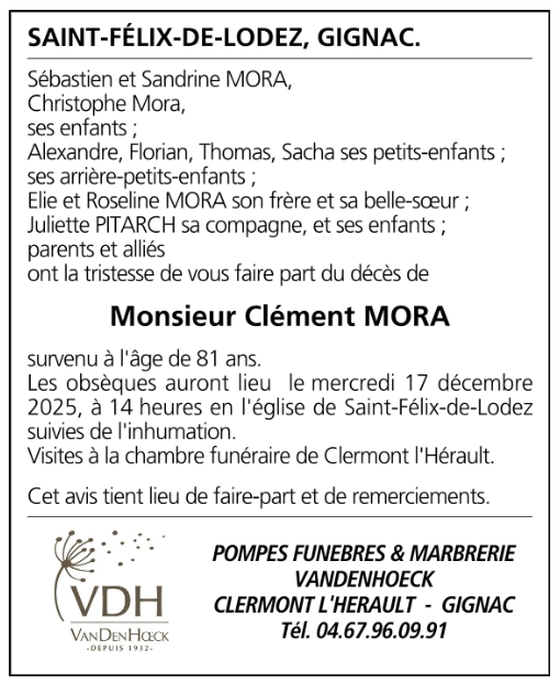 Died in Gignac (34150, France) on 13 December 2025 at the age of 81 years