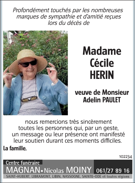 Widow of Monsieur Adelin PAULET
