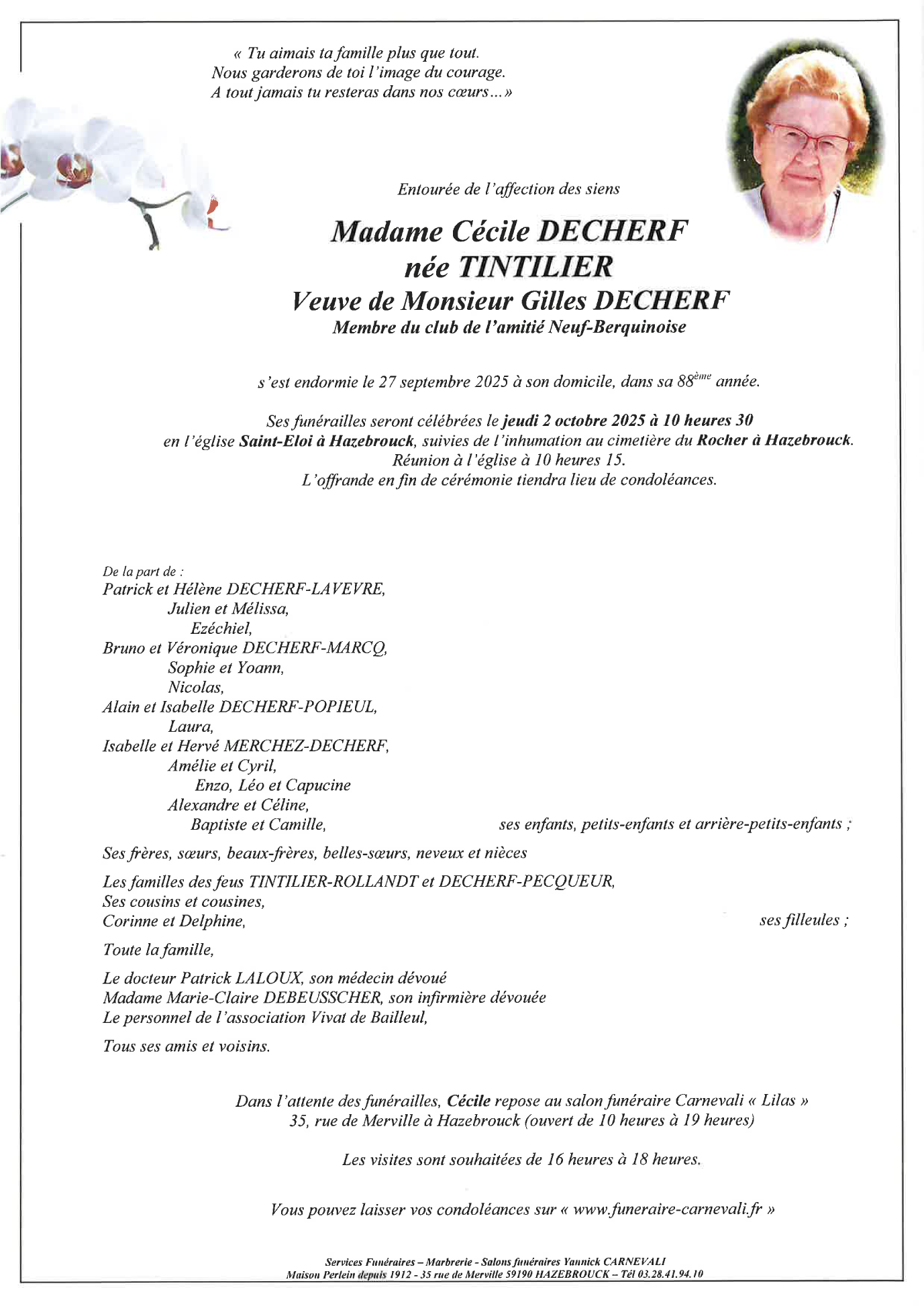 Veuve de Monsieur Gilles DECHERF