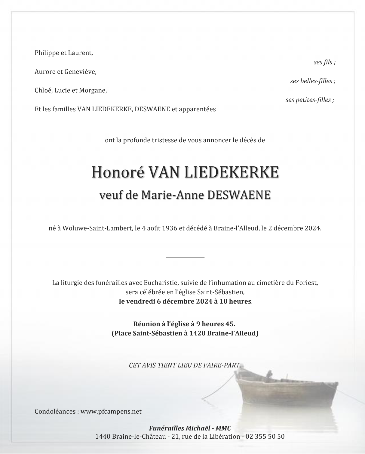 Décédé à Braine-l'Alleud (1420) le lundi 2 décembre 2024 à l'âge de 88 ans