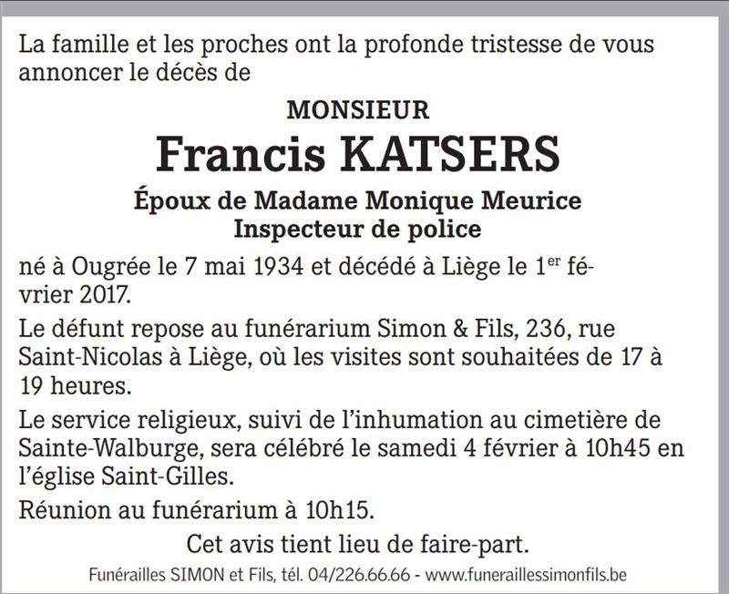Fallecido en Liège (4000) el miércoles, 1 de febrero de 2017 a la edad de 82 años