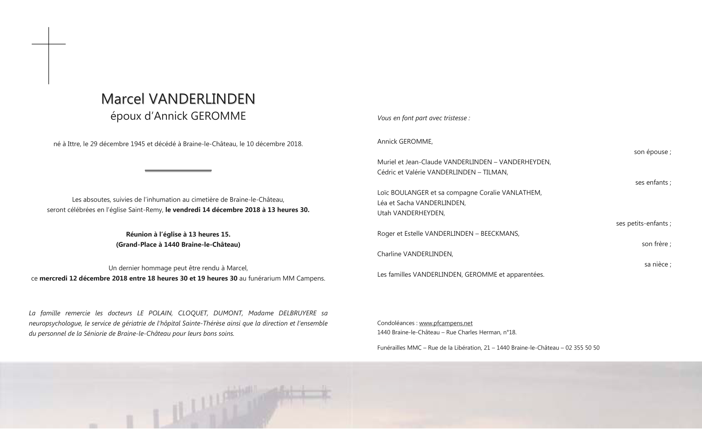 Overleden te Braine-le-Château (1440) op maandag 10 december 2018 op 72-jarige leeftijd