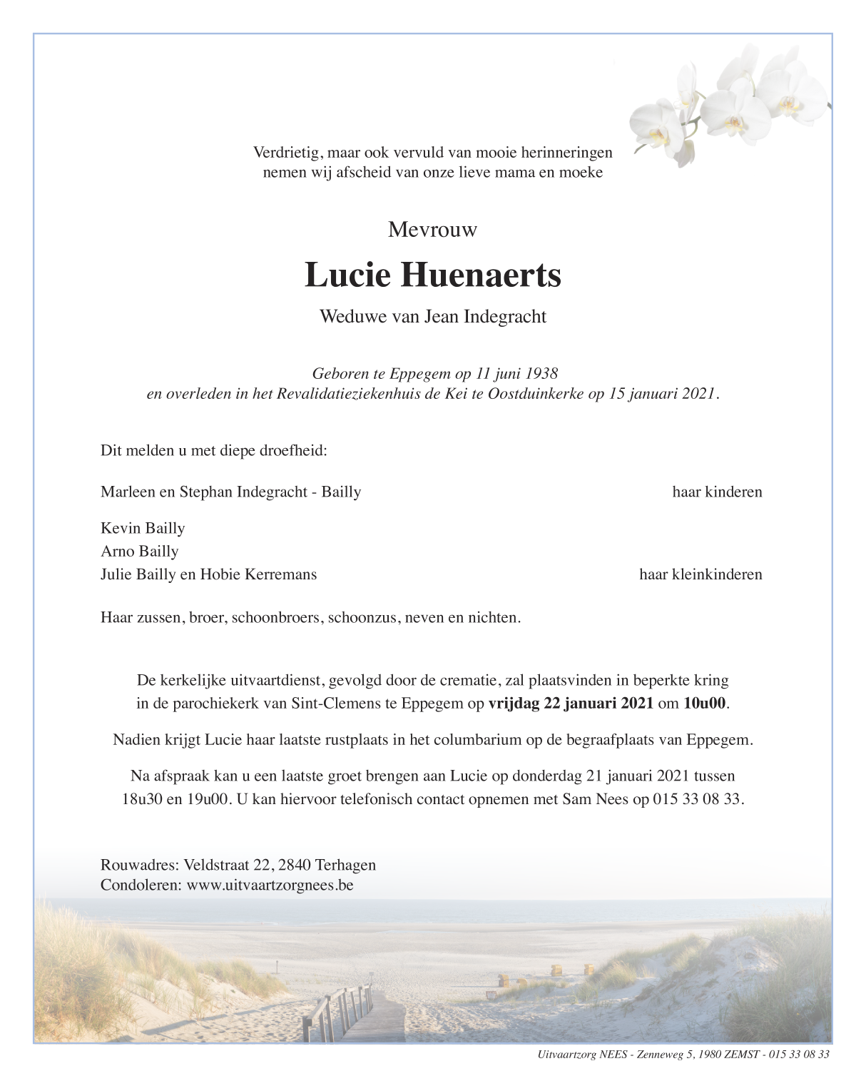 Fallecida en Oostduinkerke (8670) el viernes, 15 de enero de 2021 a la edad de 82 años
