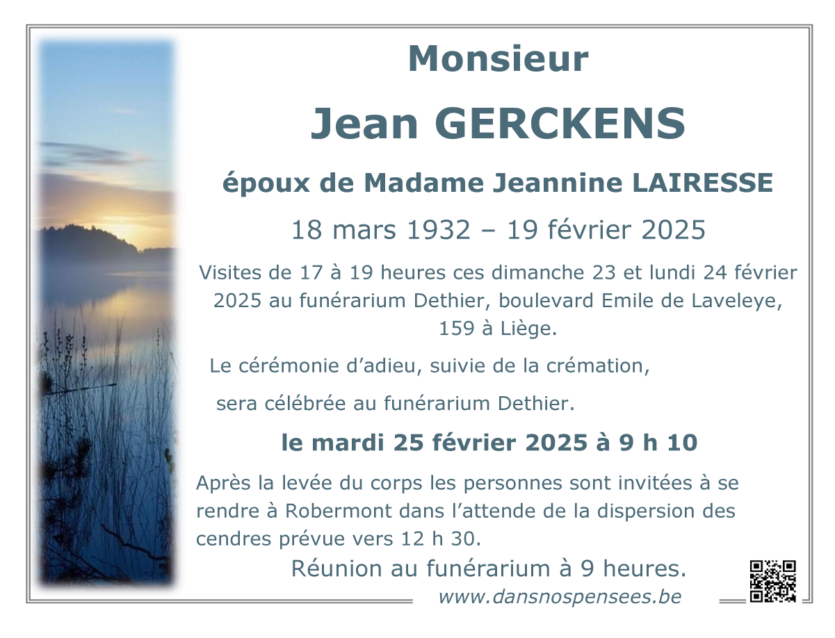 Overleden te Liège (4020) op woensdag 19 februari 2025 op 92-jarige leeftijd