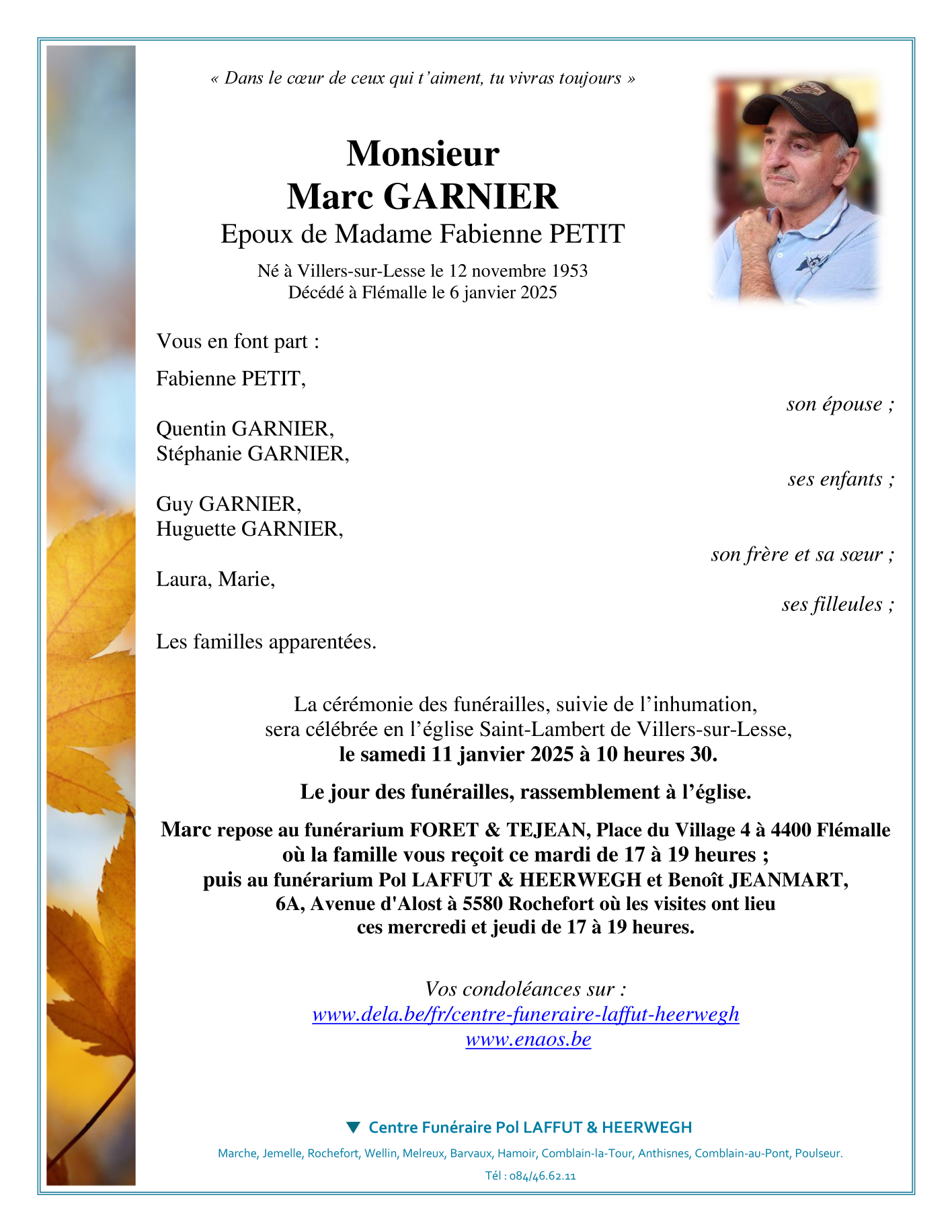 Né à Villers-sur-Lesse (5580) le jeudi 12 novembre 1953