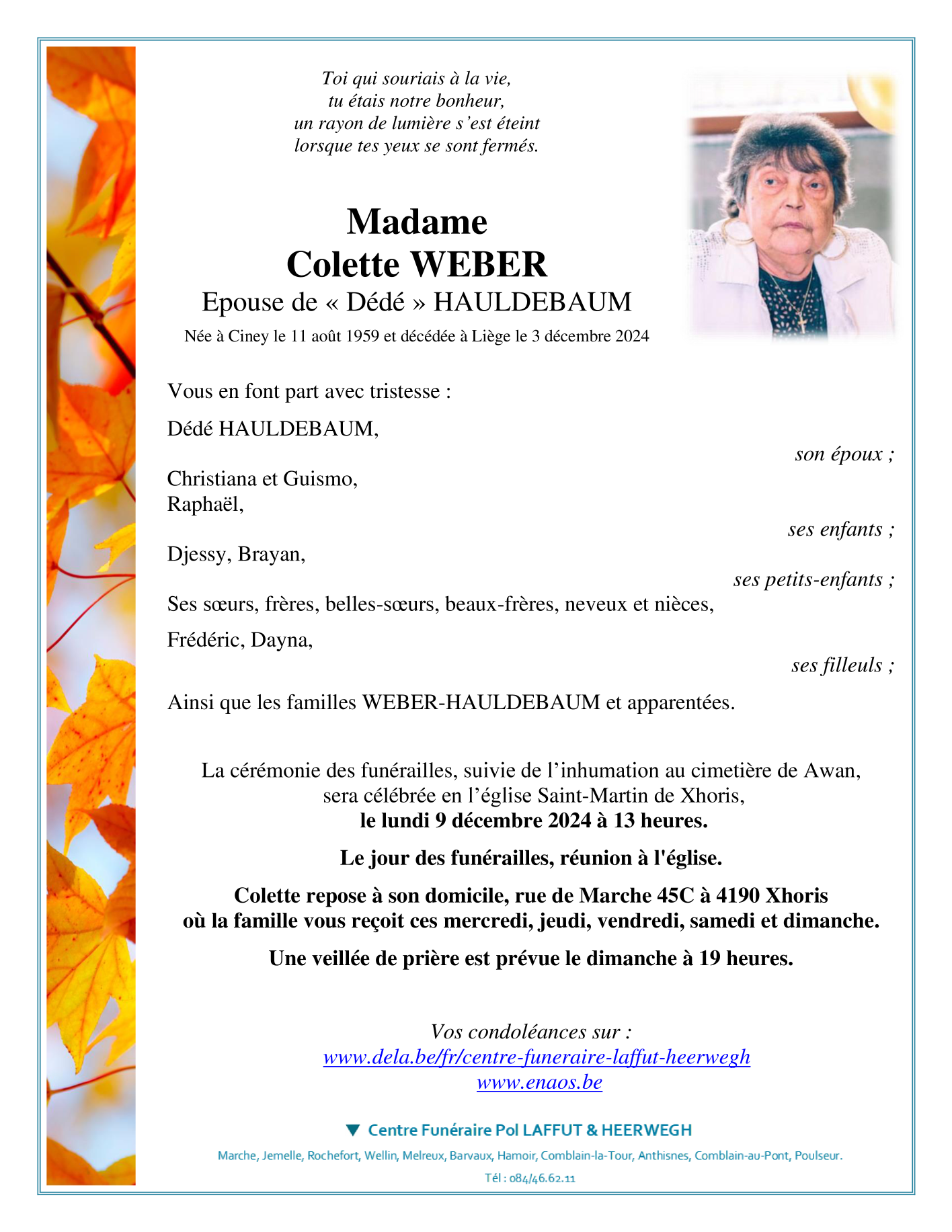 Décédée à Liège (4000) le mardi 3 décembre 2024 à l'âge de 65 ans