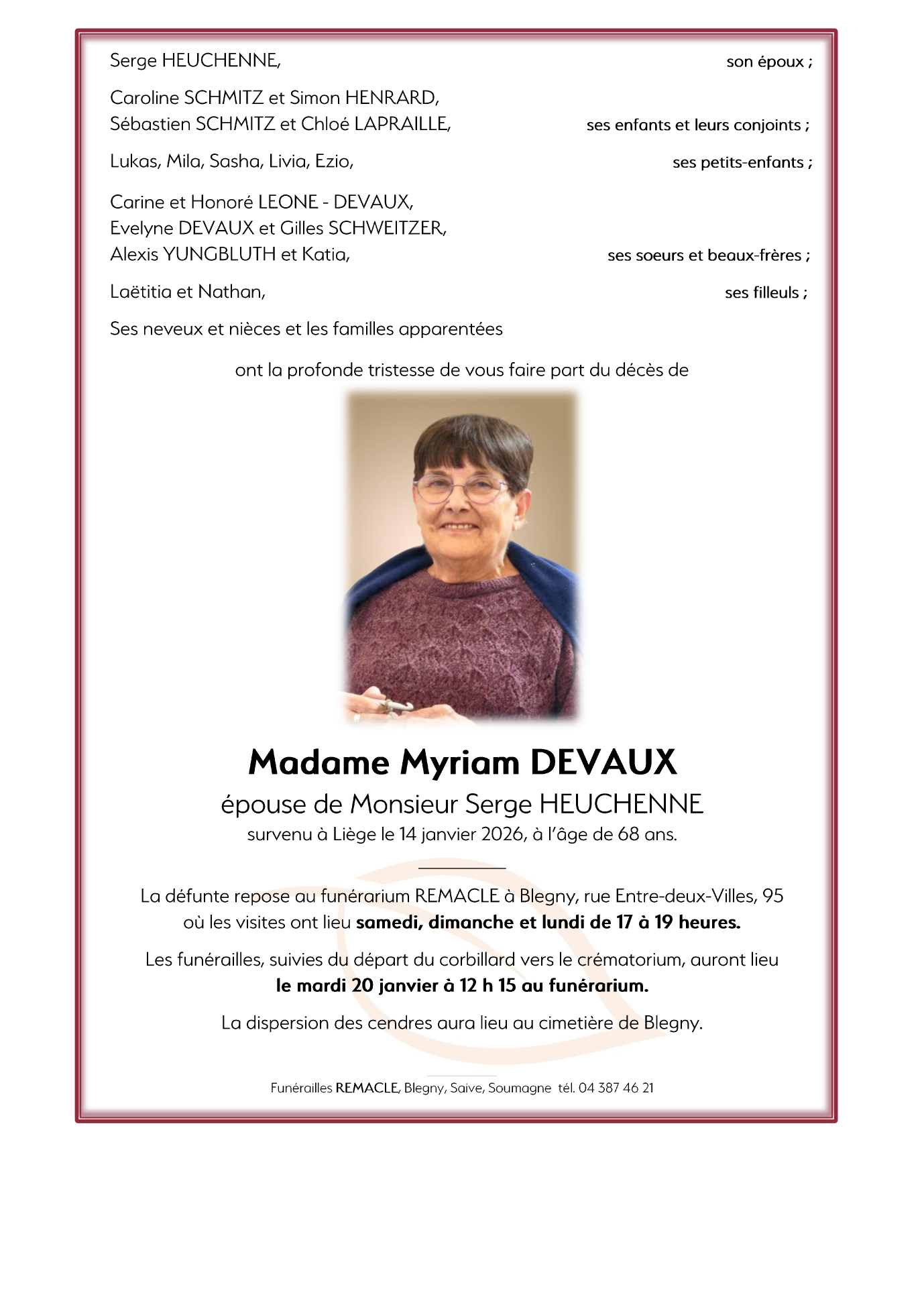 Madame Myriam DEVAUX