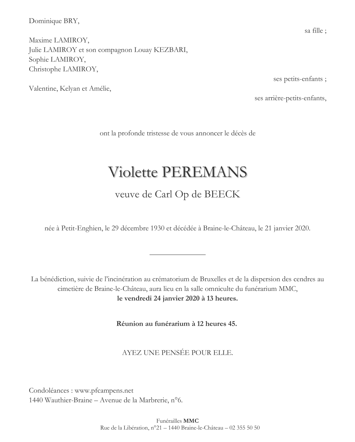 Overleden te Braine-le-Château (1440) op dinsdag 21 januari 2020 op 89-jarige leeftijd